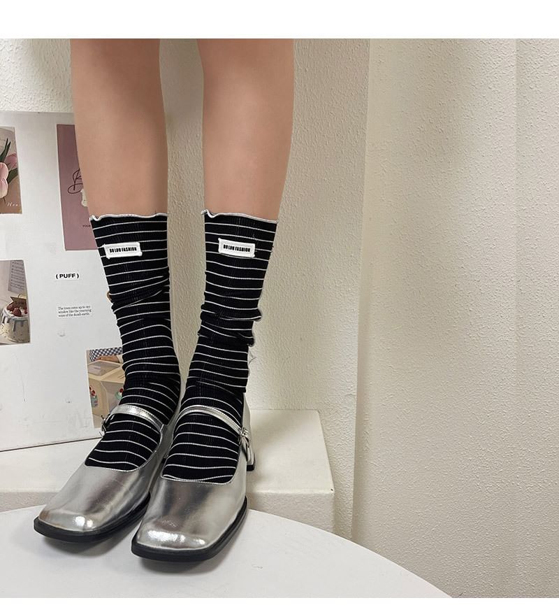 Striped Applique Lettuce Edge Socks
