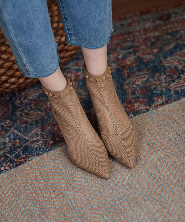 Breathable Mesh Black Rivet Splicing Boots Pointed Toe