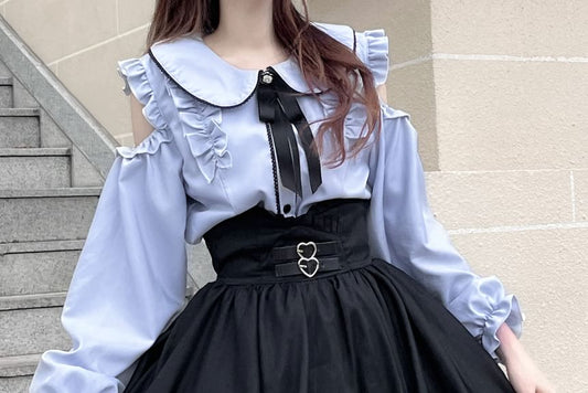 Lolita-Bluse mit schlichtem Rüschenbesatz und Kragen / schlichter Minirock in A-Linie mit hoher Taille