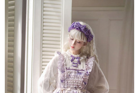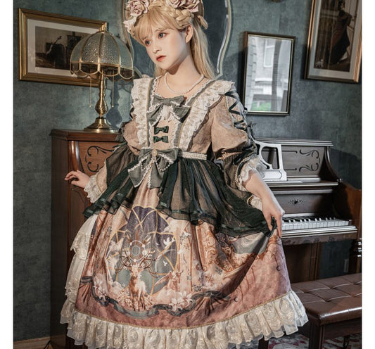 Lolita Langärmliges bedrucktes A-Linien-Kleid / Stirnband / Set