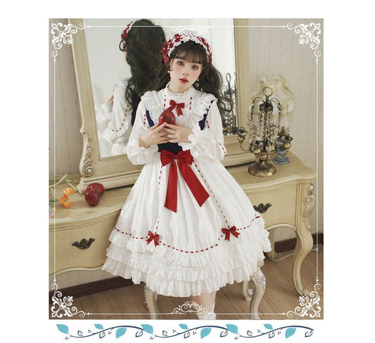 Lolita Langärmliges A-Linien-Kleid mit Schnürung an der Taille