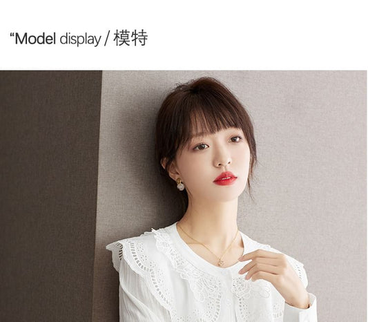 Long Sleeve Collared Round Neck Embroidered Lace Blouse