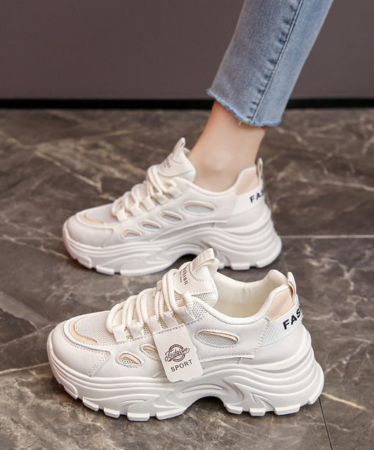 Schwarze Plateauschuhe mit atmungsaktivem Mesh, lässige Spleißen-Flats zum Schnüren, KJ041
