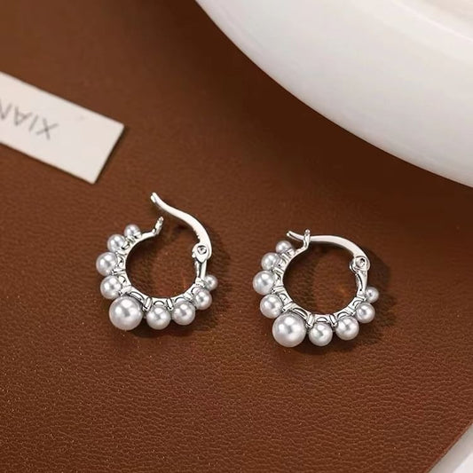 925 Sterling Silver Faux Pearl Hoop Earring