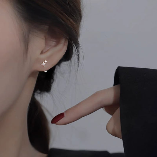 925 Sterling Silver Earring Star Rhinestone Barbell