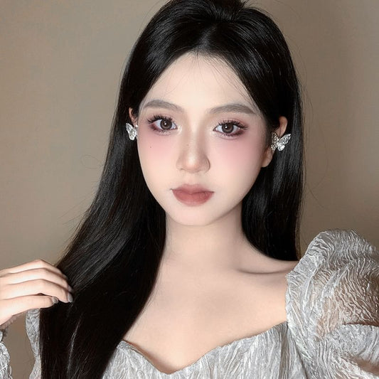 Ear Dangle Cuff Alloy Rhinestone Glaze Earring Butterfly /