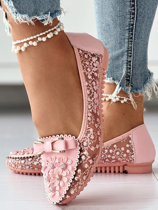 Elegante Applikationen Schleife Dekor Spitze Split Joint Flache Schuhe DD15