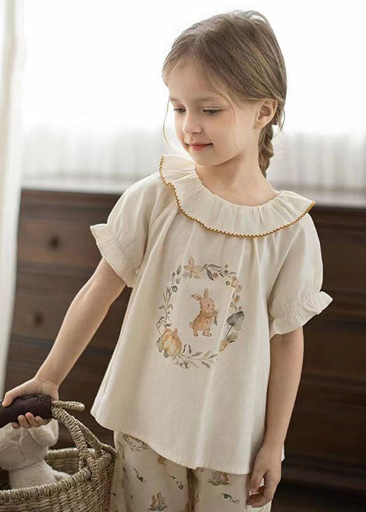 Elegantes Apricot Print Kinder Mädchen Shirt Puffärmel SS1028