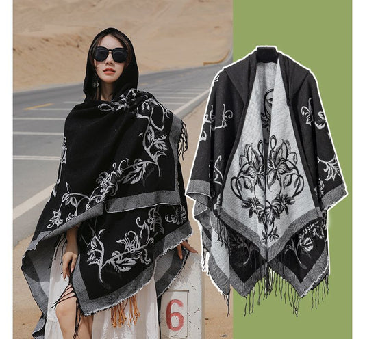 Floral Fringed Hooded Cape