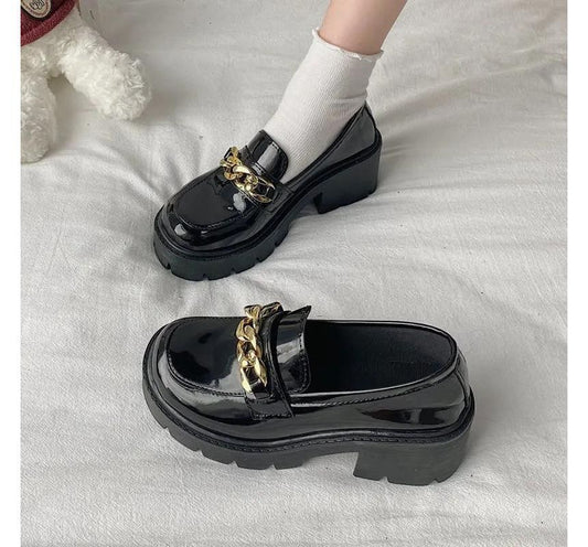 Heel Platform Chunky Accent Chain Loafers
