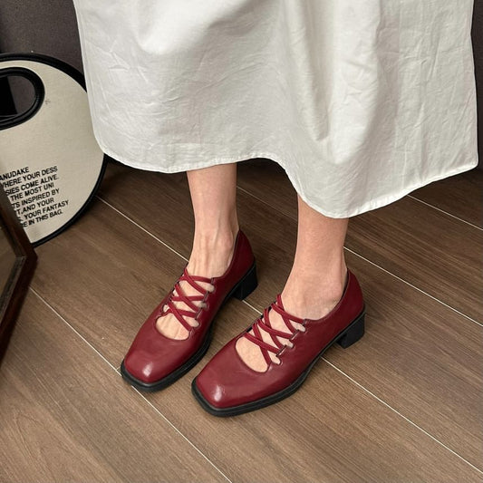 Heel Mary Lace-Up Jane Pumps Plain Square Chunky Toe