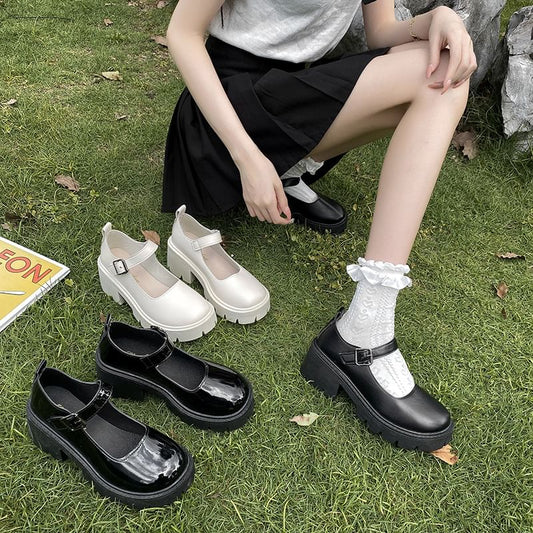 Heel Mary Jane Chunky Platform Pumps