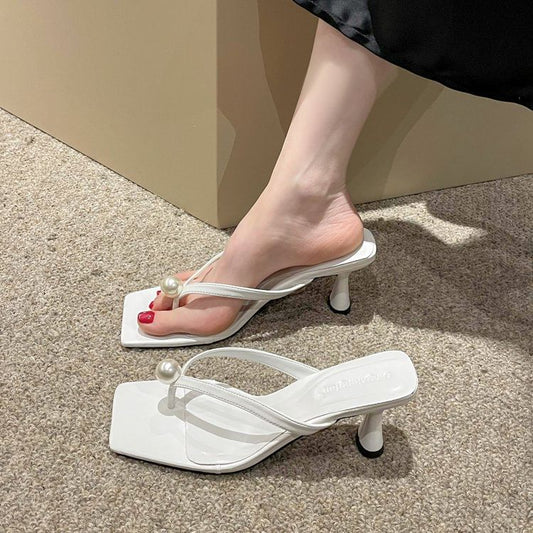 Heel Pearl Flip-Flops Kitten Faux
