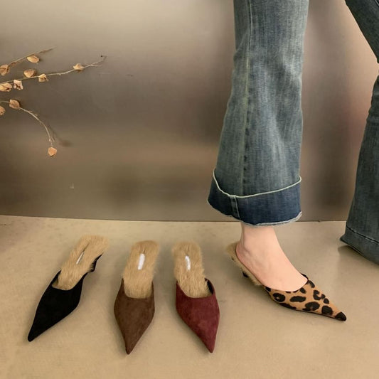 Heel Pointed Mules Kitten Toe Fleece-Lined