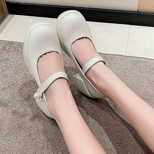Heel Pointed Pumps Buckled Mary Faux Plain Toe Leather Jane Low