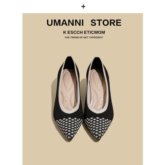 Kitten Beige Sandals Classy Pointed Splicing Hollow Out