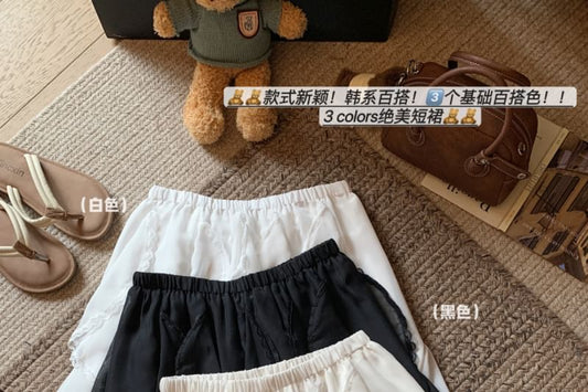 Lace A-Line Ruffle Skirt Trim High Mini Waist Plain