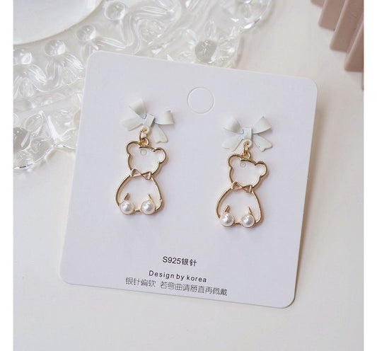 Enamel Rabbit Poker Asymmetrical Drop Earring / Clip On Earring