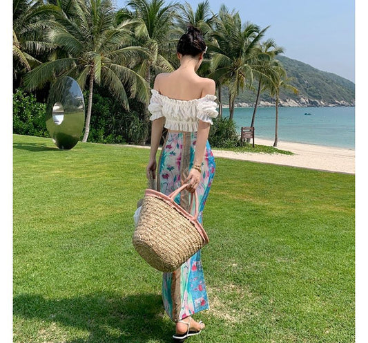 Spaghetti Strap Floral Midi A-Line Dress / Plain Shrug