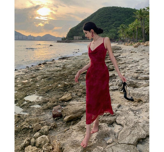 Spaghetti Strap Cowl Neck Tie-Dyed Midi Sundress