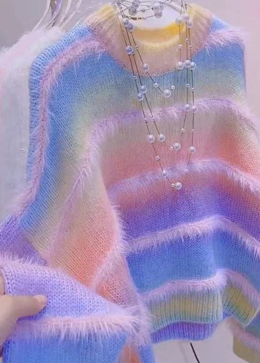 Gradient Color Pink Thick Cotton Knitted Sweater Winter RK017