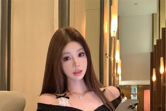 Long-Sleeve V-Neck Cold Shoulder Mock Two-Piece Lace Panel Bow Accent Crop Top