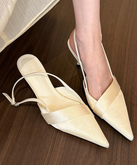 Sandals Beige Toe Pointed Bow High Heel Chic Splicing