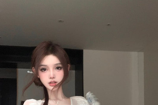 Set High Blouse Skirt Plain Rise Embroidered Top Maxi A-Line Puff-Sleeve Shorts / Flower V-Neck Camisole