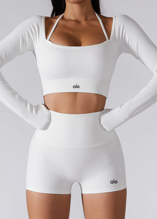 Top Camisole Studded Set: Knit Waist Ribbed + Shorts High Cardigan Crop