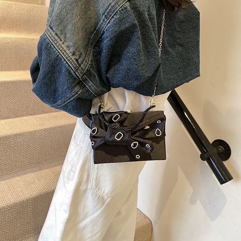 Rhinestone Bow Box Crossbody Bag