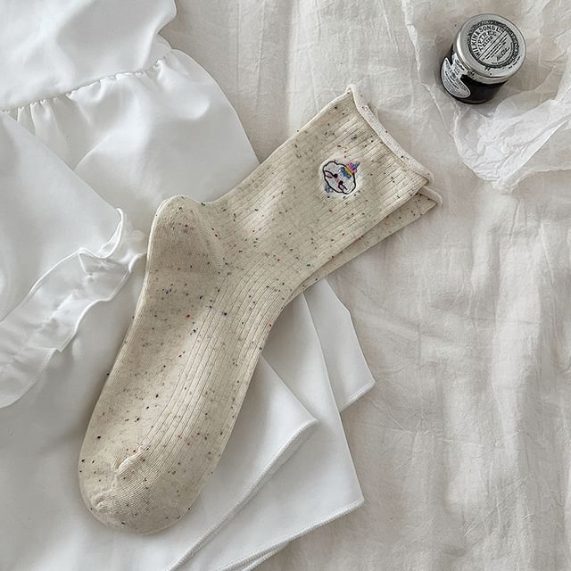 Cartoon Embroidered Crew Socks