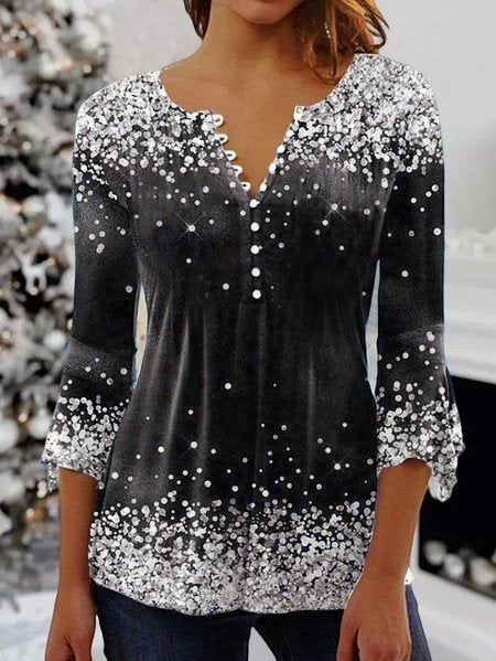 Lässiges Weihnachts-Strickoberteil mit langen Ärmeln AD769