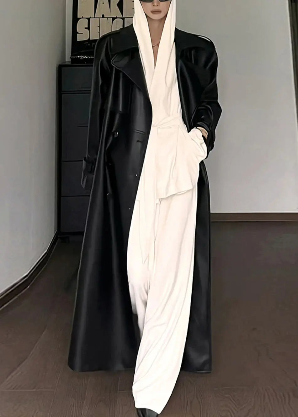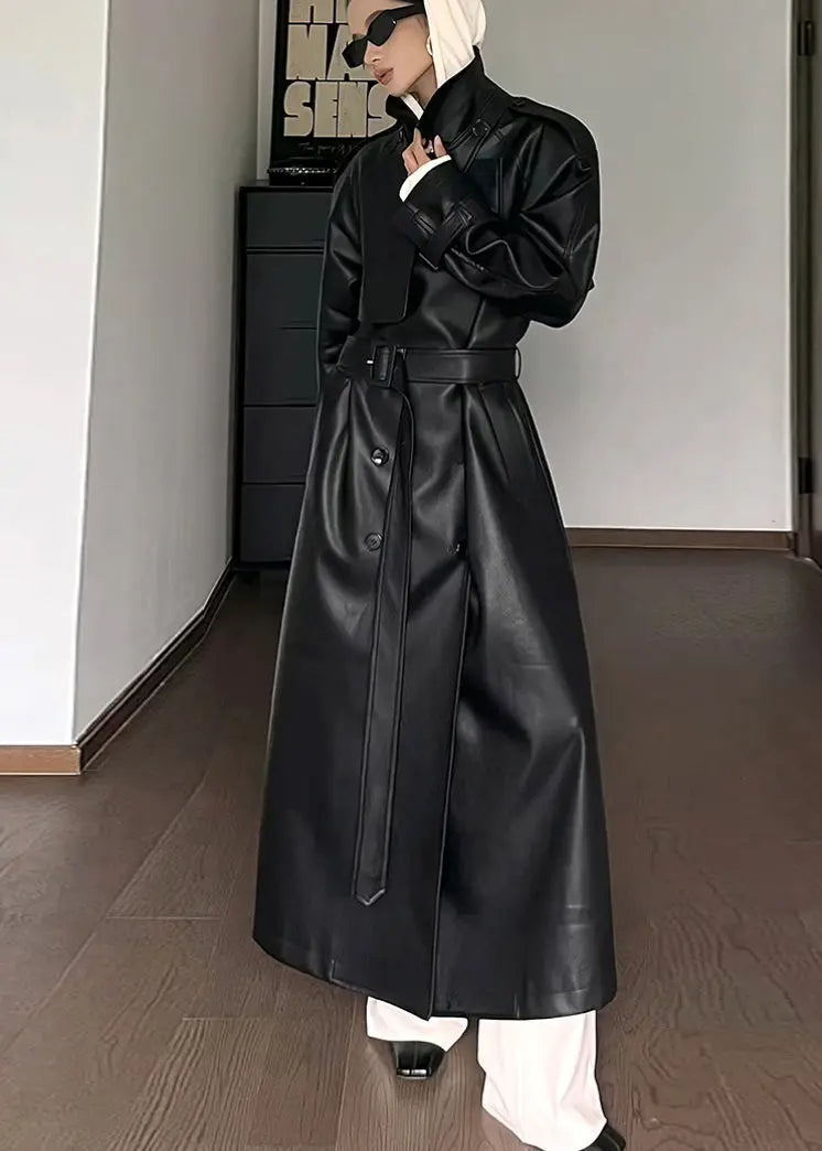 Kunstledermantel mit Taschen und Bindegürtel für den Herbst