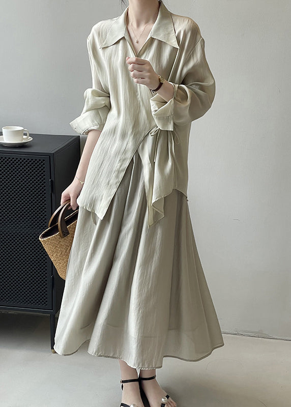 Green Button Solid Two Piece Set Fall Peter Pan Collar QE008