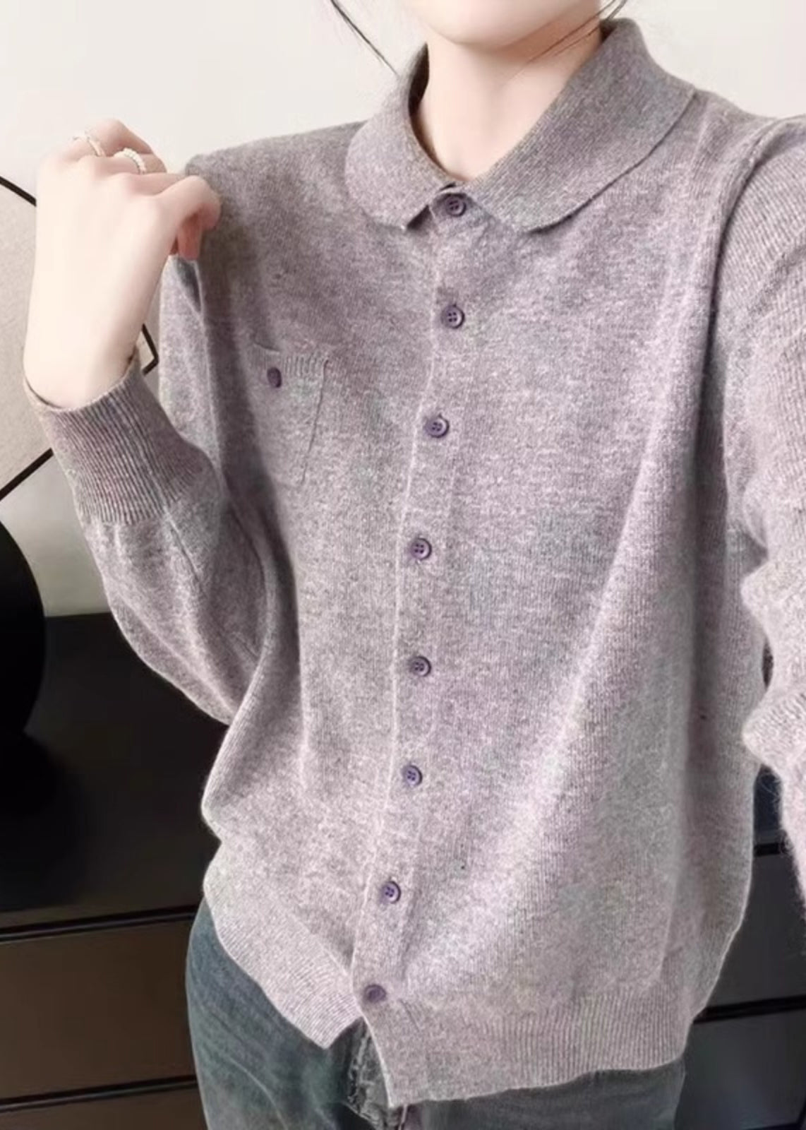 Indulge in the luxurious elegance of our Handmade White Peter Pan Collar Pockets Solid Cotton Knitted Cardigans, the perfect addition to your fall wardrobe. Each piece is carefully crafted with skilled hands for a truly unique and exclusive garment.