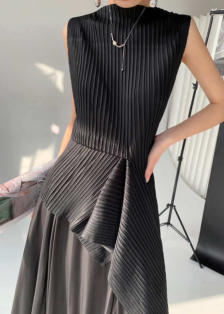 Italian Purple Turtleneck Asymmetrical Patchwork Tops Summer AN1013