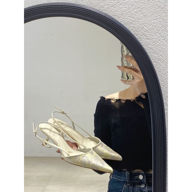 Kitten Pumps Pointed Slingback Jacquard Toe Heel