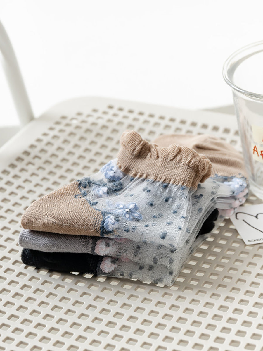 Lace Artsy Socks Pairs Women 3 Flower Jacquard