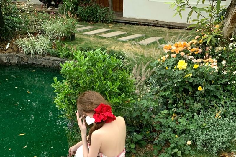 Lace Midi Halter Open A-Line Dress Panel Back Plaid