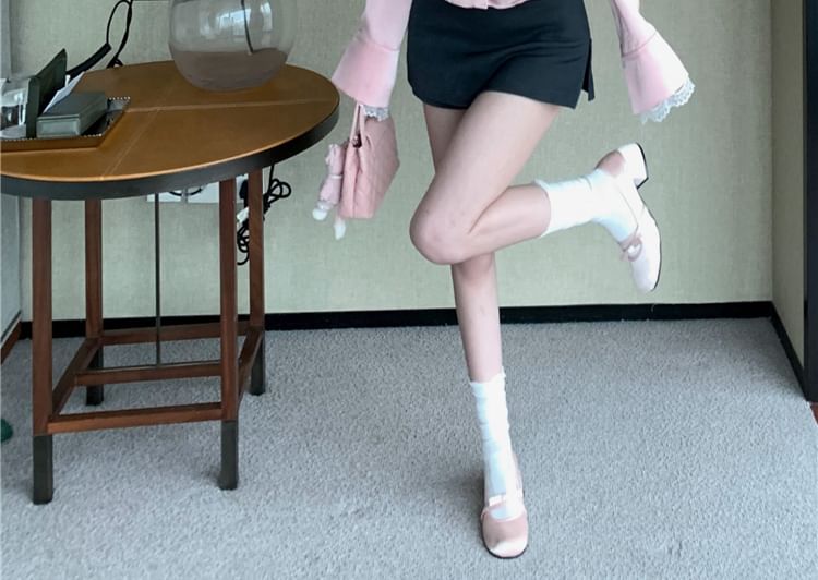 Lace Rise Trim / Pencil Collared Plain Mini Blouse Skirt High Button-Up Long-Sleeve