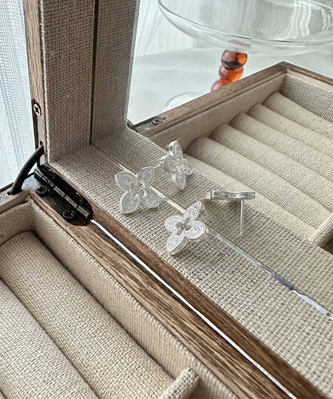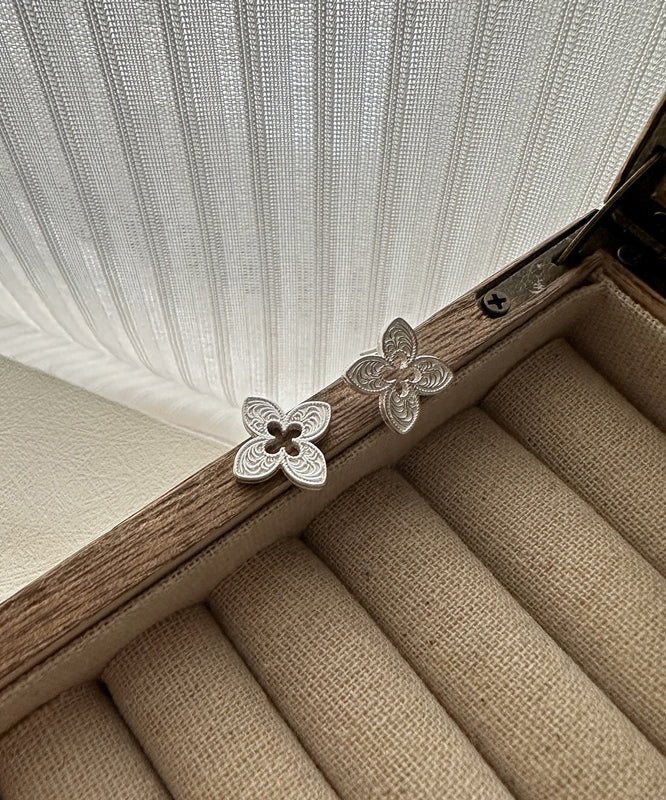 Leaf Four Clover Silver Out Hollow Stud Sterling Novelty Silk