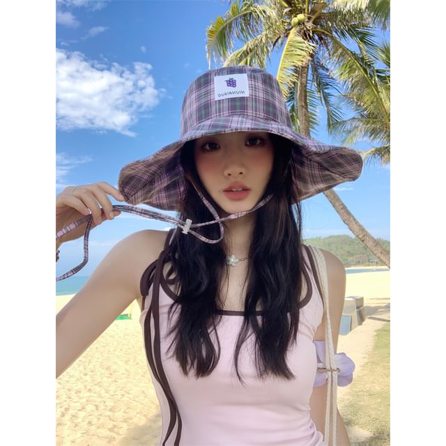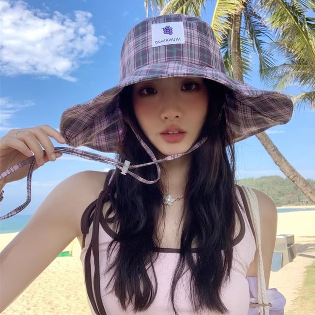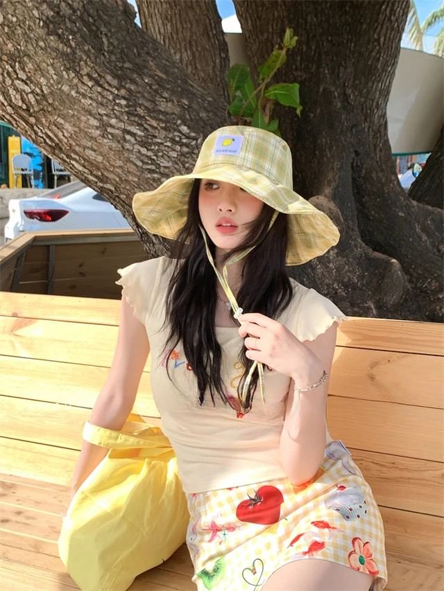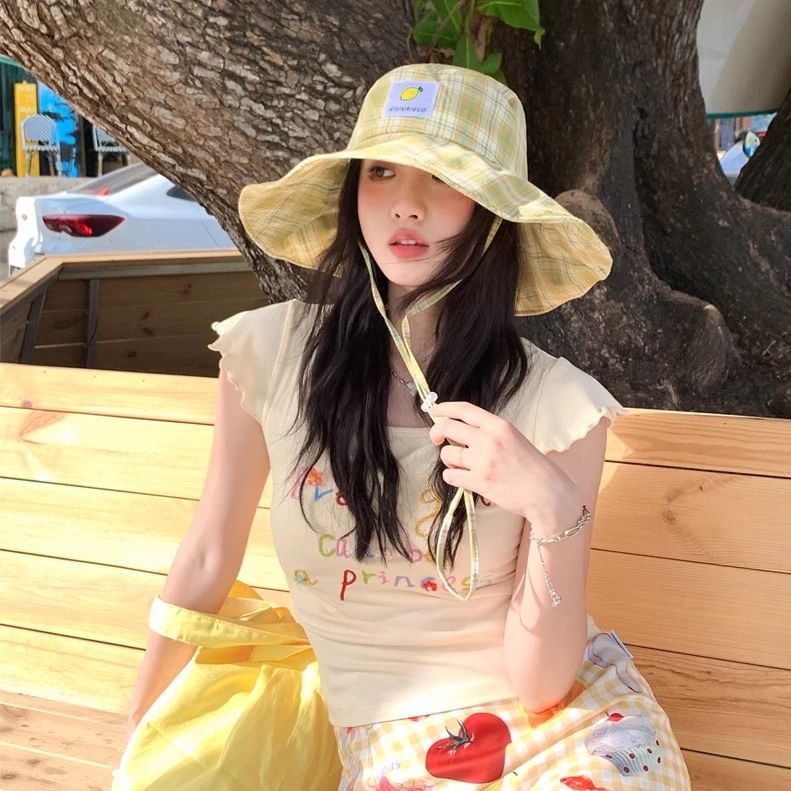 Lemon Applique Plaid Sun Hat