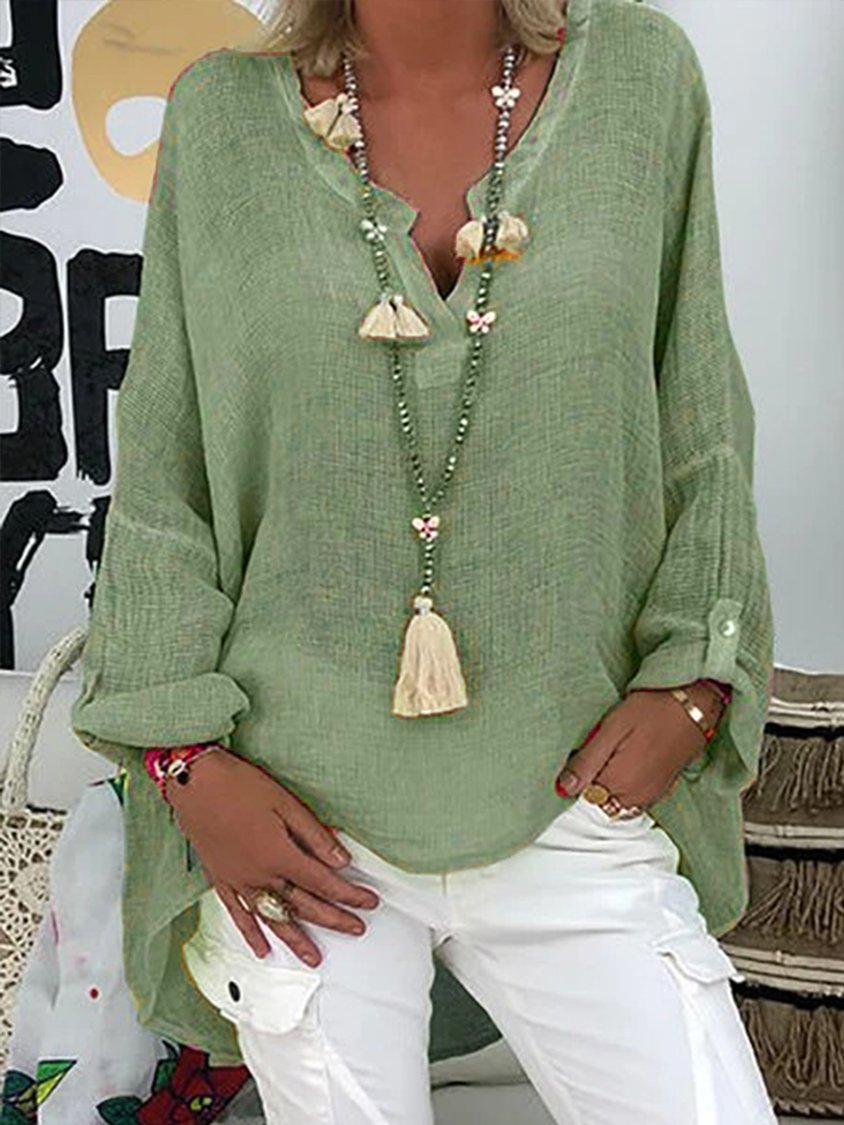 Produkttitel: Langärmlige, lässige, einfarbige Bluse in großer Größe