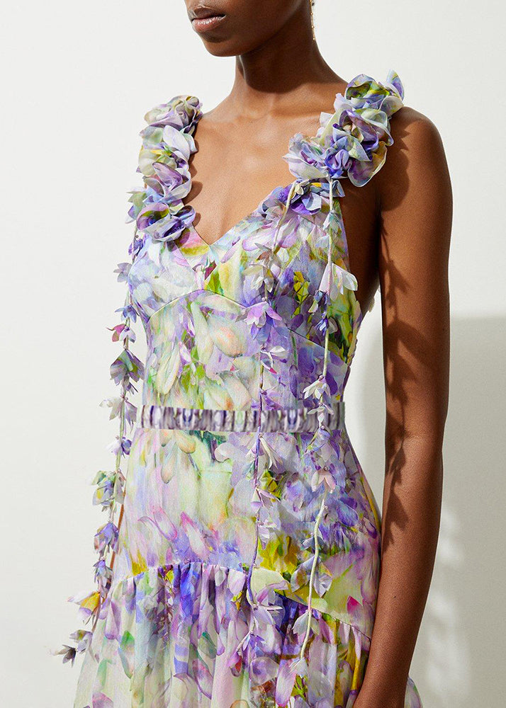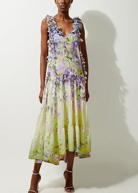 Boho V-Neck Print Patchwork Bodysuit And Maxi Skirts Lingerie Set