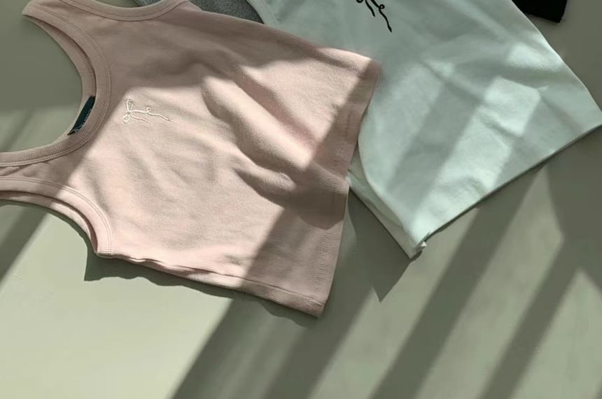 Scoop Neck Bow Embroidered Tank Top