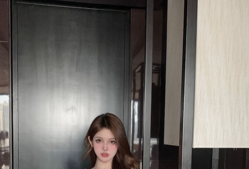 Set High Blouse Skirt Plain Rise Embroidered Top Maxi A-Line Puff-Sleeve Shorts / Flower V-Neck Camisole