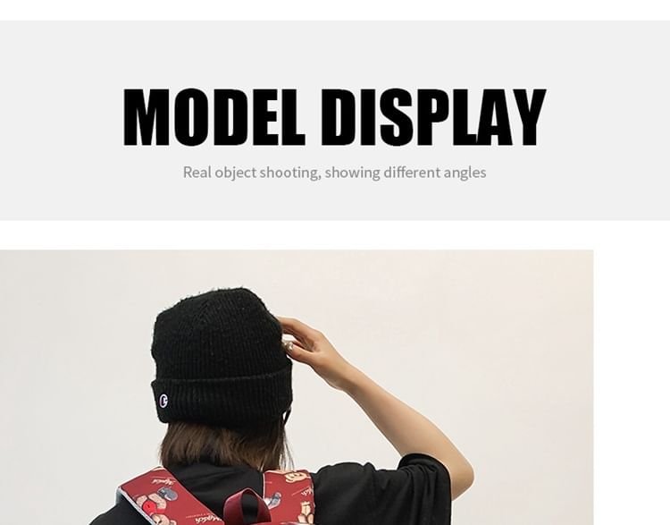 Bear Print Lettering Applique Nylon Laptop Backpack / Tote Bag / Bag Charm / Set