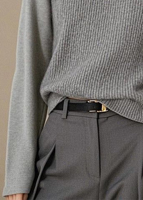 Simple Grey O Neck Patchwork Knit Top Winter RK025