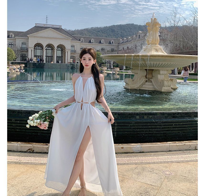 Spaghetti Strap Plain Cutout Slit Maxi A