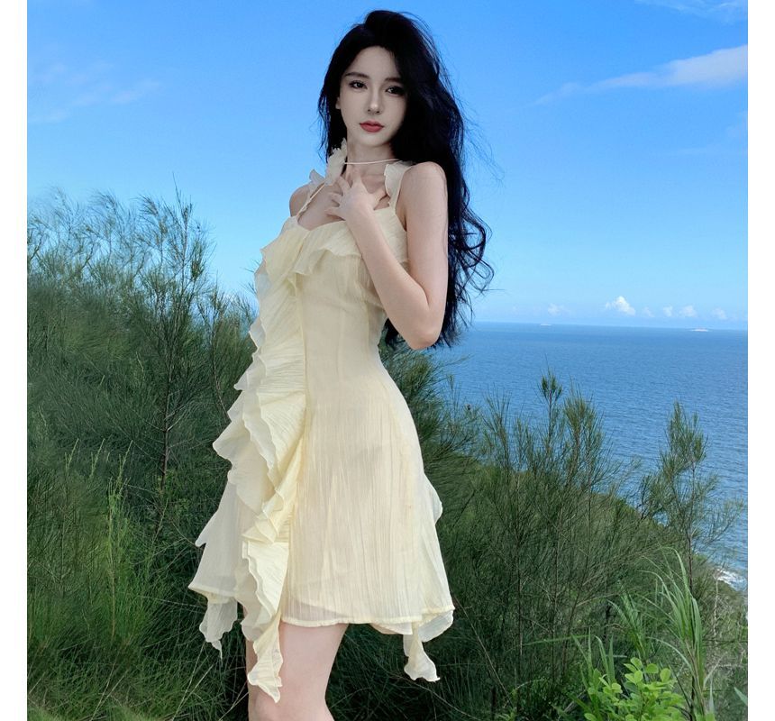 Spaghetti Strap Plain Ruffle Trim Mini A